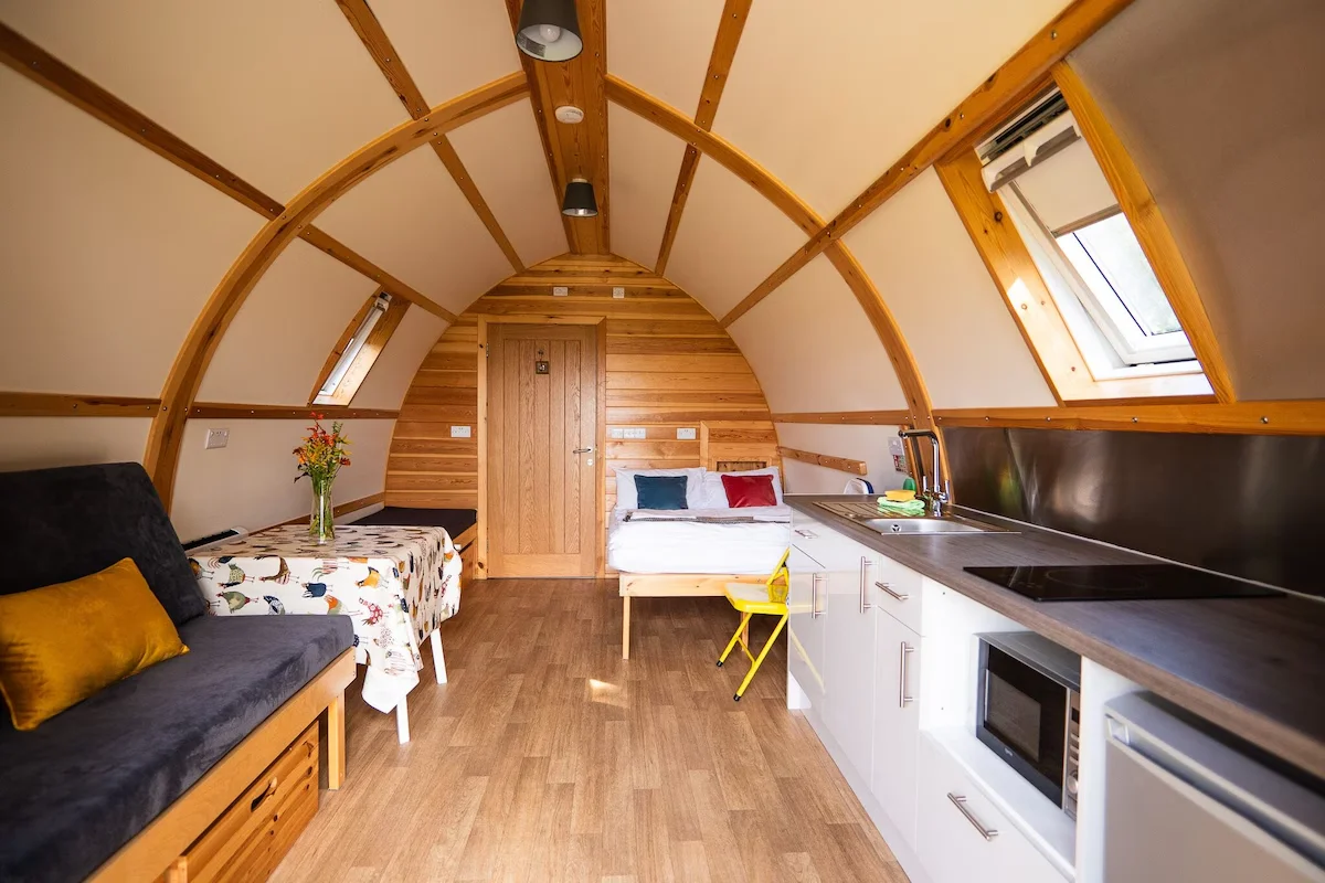 The open plan living and sleeping area provides generous circulation space and smooth flooring, supporting wheelchair friendly movement.