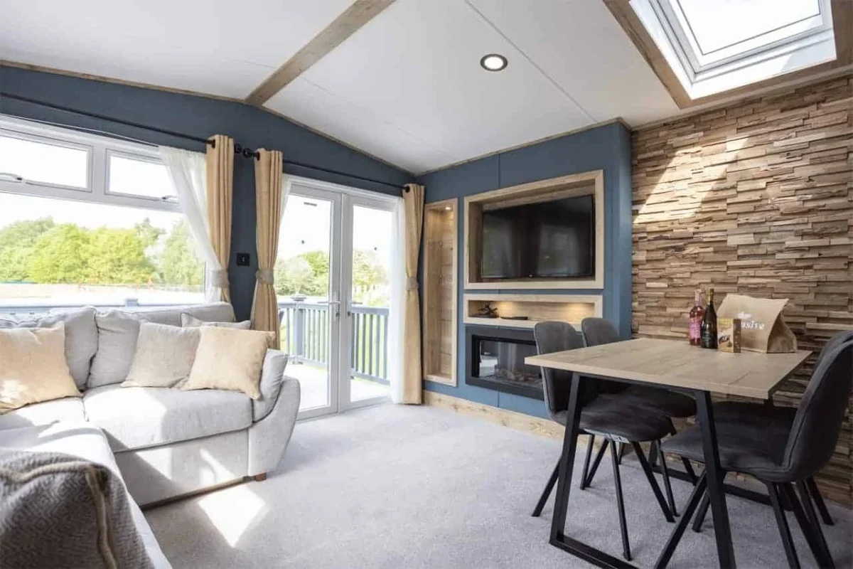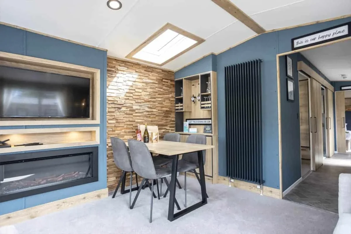 The open plan lounge and dining area is fully step free and provides good circulation space for wheelchair users and mobility equipment.