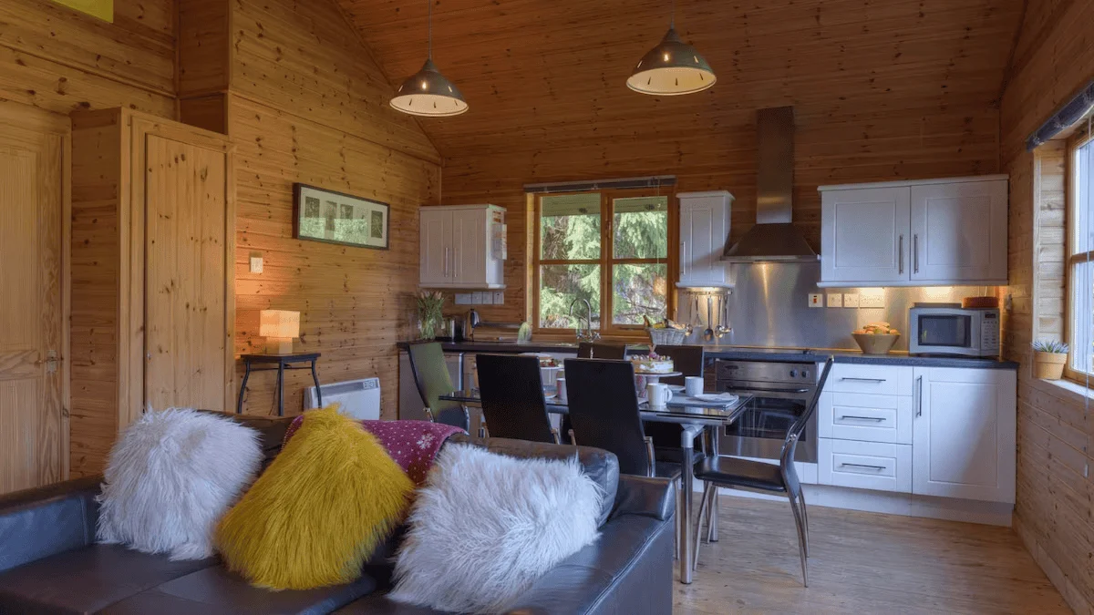 All accommodation is arranged on one level with no internal steps. Wide doorways and clear circulation space support movement for guests with limited mobility throughout the lodge.