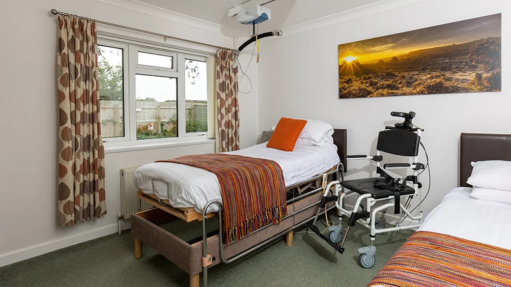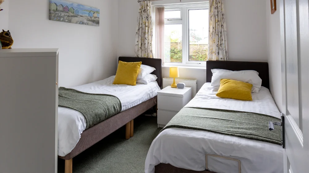 The second bedroom is a twin room with two profiling beds. This room has limited wheelchair turning space and is most suitable for carers, children or family members rather than full time wheelchair users.
