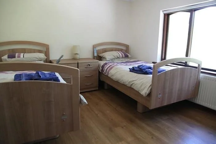 Apartments are available with one or two bedrooms, all featuring twin beds. Profiling beds are provided, with extendable bed options available where required. Transfer space beside beds exceeds 1 metre, supporting assisted or independent transfers.