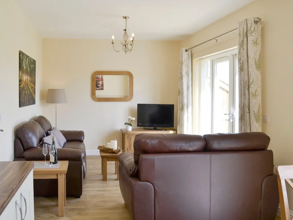 Bramble Cottage is entirely on one level, with open-plan living spaces and step-free access throughout. Doorways and circulation spaces allow wheelchair users to move comfortably between rooms.