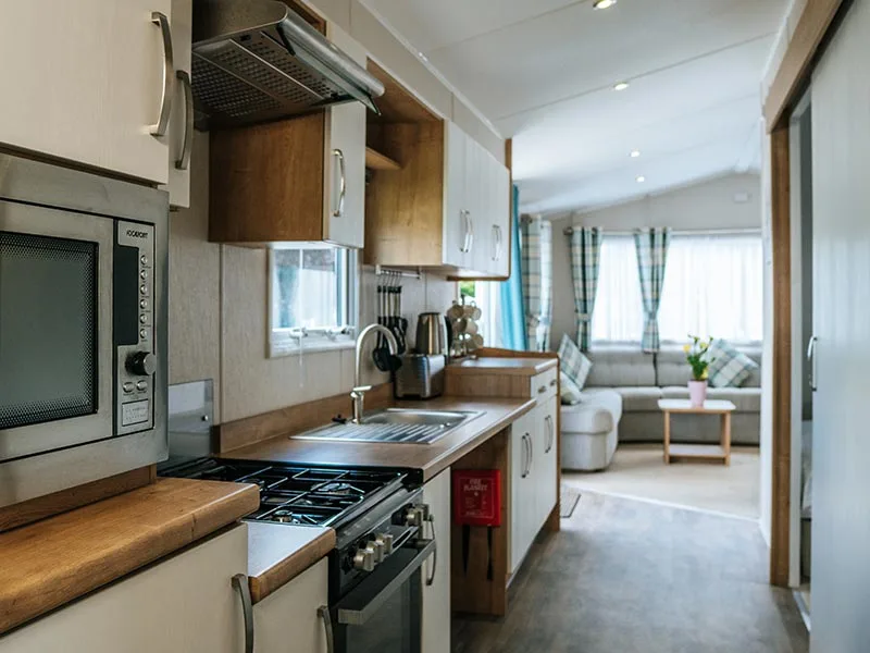 The caravan is accessed via a step-free ramp from the parking area. Space for WAV vehicles is available nearby, supporting straightforward arrival and departure.
