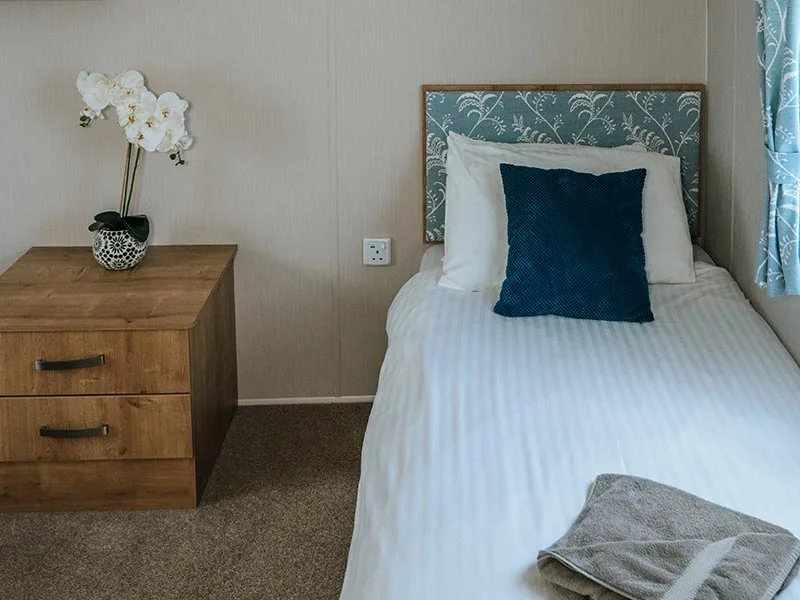 There are two ground-floor bedrooms, one double and one twin. Transfer space beside the beds exceeds 1 metre, supporting wheelchair access and assisted transfers where required.