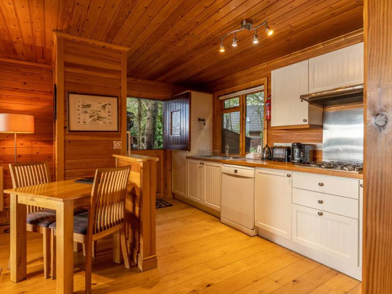 Welcome to Chiff Chaff Lodge, a cosy and wheelchair accessible holiday lodge for two, nestled within the tranquil woodland of The Tranquil Otter in Thurstonfield, Cumbria. Designed with accessibility, comfort, and relaxation in mind, Chiff Chaff Lodge offers the perfect peaceful retreat surrounded by nature near Carlisle and the Lake District. The open-plan living area welcomes you with uninterrupted lake views, creating a calm and inviting atmosphere. A log burner provides warmth and comfort, complemented by a recliner sofa and a spacious layout that allows easy movement throughout. Large patio doors open directly onto the decking area, providing level access and a smooth transition between indoor and outdoor spaces where you can relax and enjoy the tranquil lakeside setting. The accessible kitchen is designed for convenience, featuring a mid-height oven and reachable appliances for those cooking from a seated position. While some upper cupboards are higher, the galley-style layout ensures clear pathways and practicality for all guests. Meals can be enjoyed at the freestanding dining table and chairs, located close to the kitchen for an easy self-catering experience. The bedroom offers a super king-size bed, which can be arranged as twin beds upon request, along with generous space around the bed for wheelchair access. The accessible bathroom includes a step-free shower with a handheld attachment, a wheel-under sink with lever taps, and a toilet with transfer space. Handrails are fitted around the sink, shower, and toilet for extra stability and comfort. Outside, the level decking area features a sunken hot tub, offering the perfect spot to unwind while enjoying peaceful lake views. The step-free access extends to a lawn with a BBQ area, ideal for al fresco dining in the fresh Cumbrian air. Ramped access from the parking area ensures smooth entry to the lodge, and on-site parking is conveniently located close by. Assistance dogs are warmly welcomed, ensuring every guest feels included and comfortable. Located just a short drive from The Royal Oak and other local dining options, Chiff Chaff Lodge combines accessibility, natural beauty, and thoughtful design. Whether you are looking for a disabled-friendly holiday in Cumbria or a wheelchair accessible lodge near the Lake District, this peaceful retreat provides the perfect setting for a relaxing and inclusive stay.