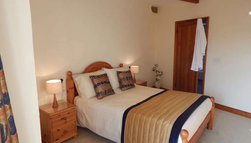 Both bedrooms are located on the ground floor. The double and twin bedrooms each provide more than 1 metre of transfer space beside the beds.