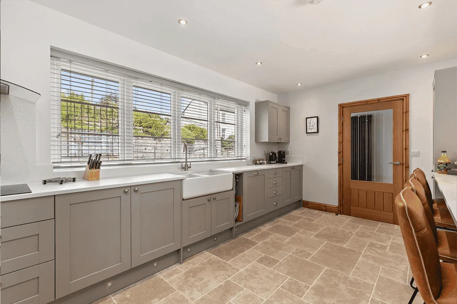 The ground floor twin bedroom offers more than 1 metre of transfer space beside the beds and is located next to the accessible wet room. Upstairs, the property includes a super king bedroom with en-suite shower room and a further twin bedroom.