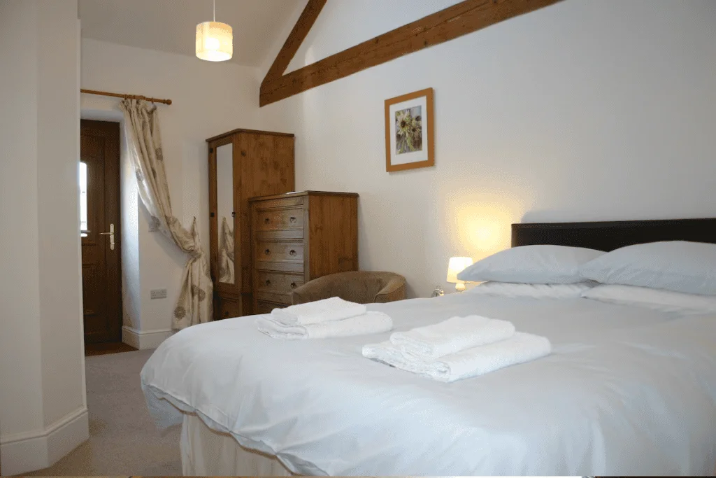 The ground floor master bedroom includes a king-size bed with more than 1 metre of transfer space and direct access to the en-suite wet room. Additional bedrooms upstairs include one king-size room and one twin room.
