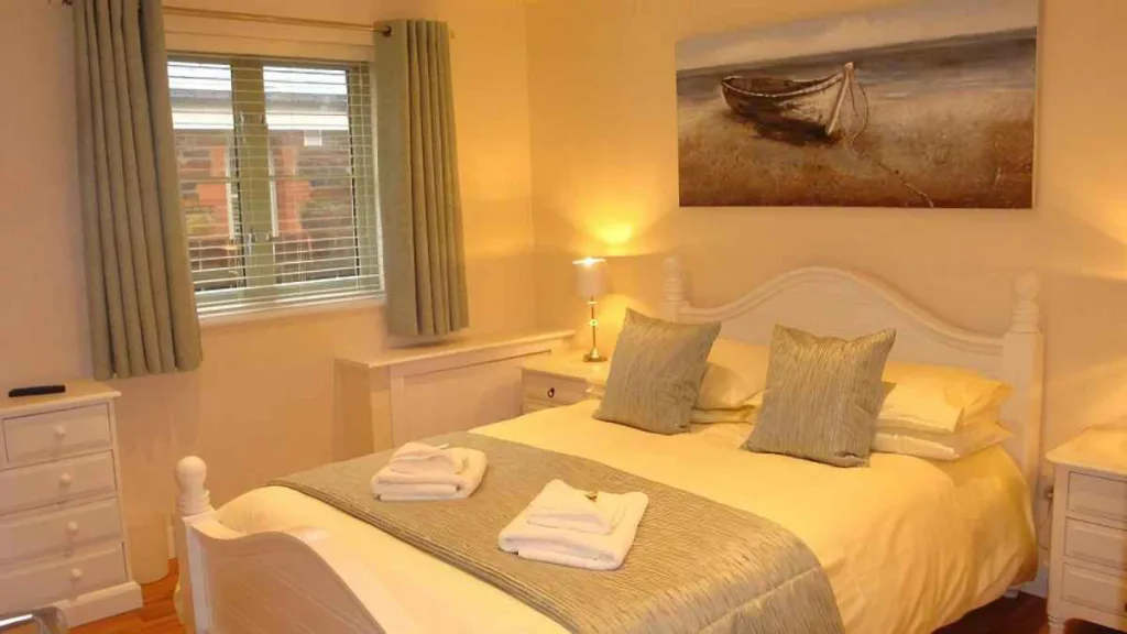 Both bedrooms are located on the ground floor and provide generous manoeuvring space. The beds offer more than 1 metre of transfer space, with space underneath to support hoist use if required.