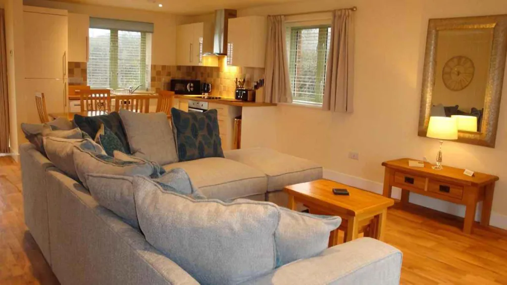 The property benefits from step-free access at both the front and rear entrances. Free onsite parking is available close to the accommodation, with space suitable for a wheelchair accessible vehicle. Ramped routes connect the entrance and patio areas.