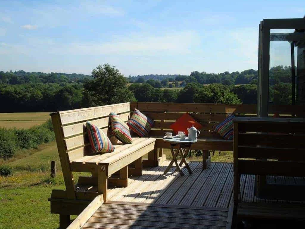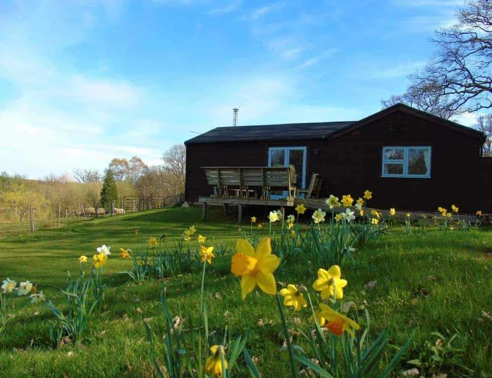 The property is accessed via a step-free ramped entrance. Free onsite parking is available close to the cottage, with level routes leading to the entrance and outdoor seating areas.