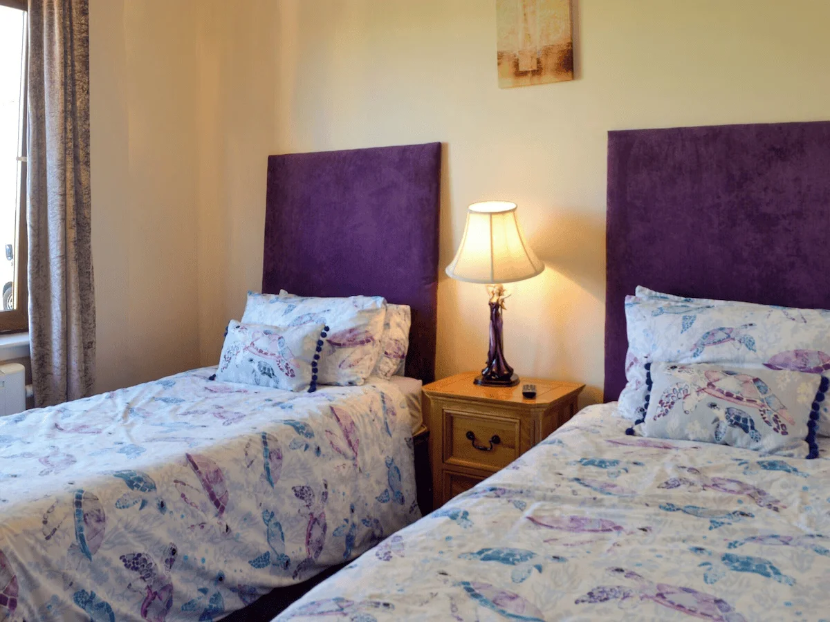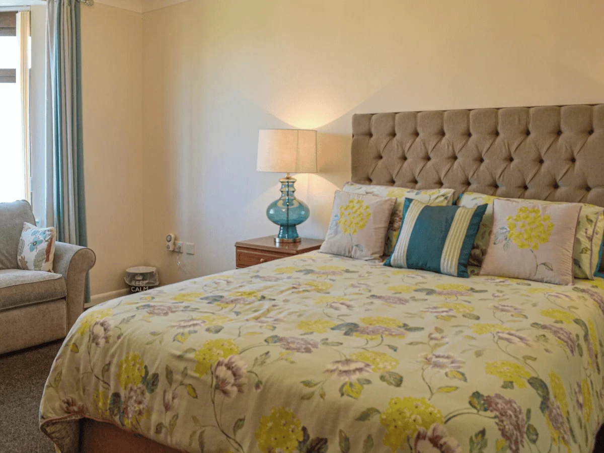 The ground floor includes two king-size bedrooms and one twin bedroom, each offering generous circulation space and more than 1 metre of transfer space beside the beds. An additional double bedroom with en-suite shower room is located on the first floor for guests not requiring step-free access.
