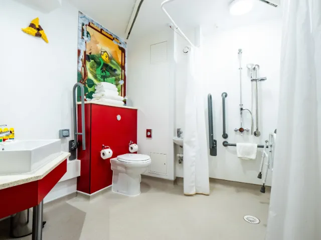 The hotel provides level internal access with lifts serving all floors. The Accessible LEGO® NINJAGO® Room is arranged on one level with wide doorways and generous manoeuvring space.