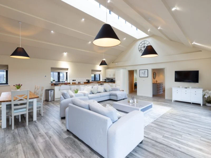 The lodge is single storey and provides level, step free access throughout both the interior and exterior. All rooms are located on the ground floor, allowing easy movement between the living areas, bedrooms, and bathrooms.