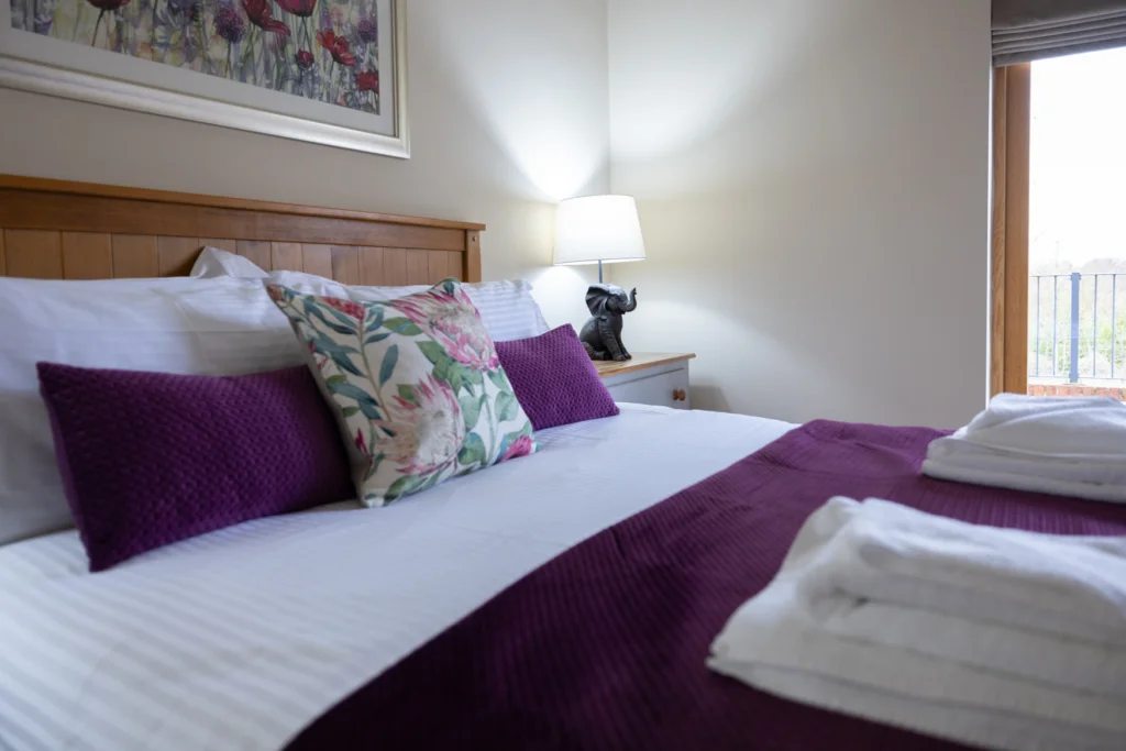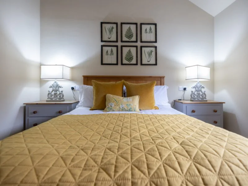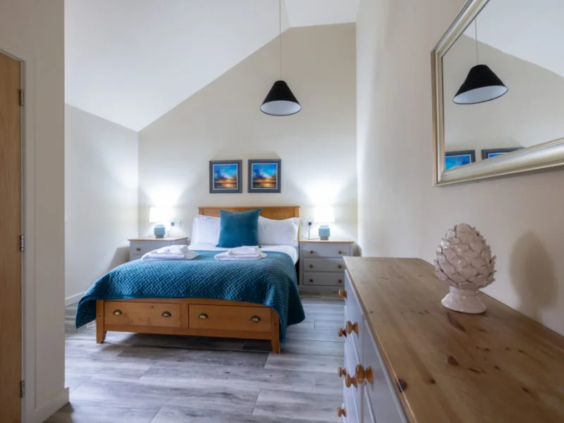 All four bedrooms are on the ground floor and each includes an ensuite bathroom. Three bedrooms have double beds with space on either side for wheelchair access, while the fourth bedroom has twin beds and is also designed to allow easy movement.