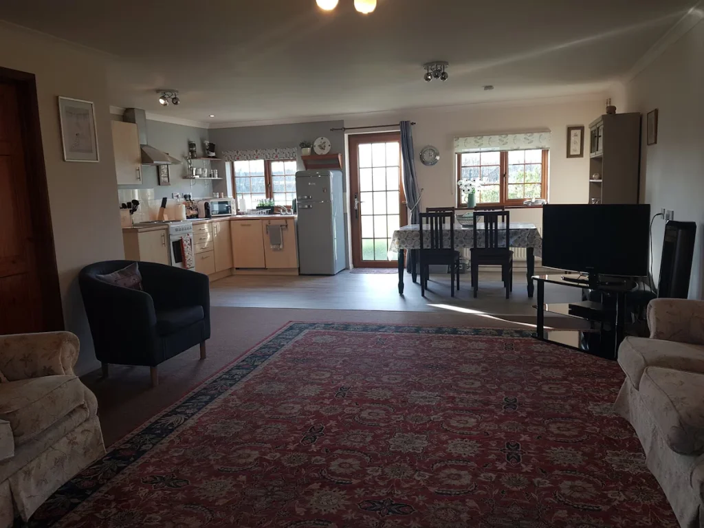 Allocated onsite parking is available close to the cottage. Step free level access is provided via a ramped entrance, allowing smooth arrival for wheelchair users and guests with limited mobility.