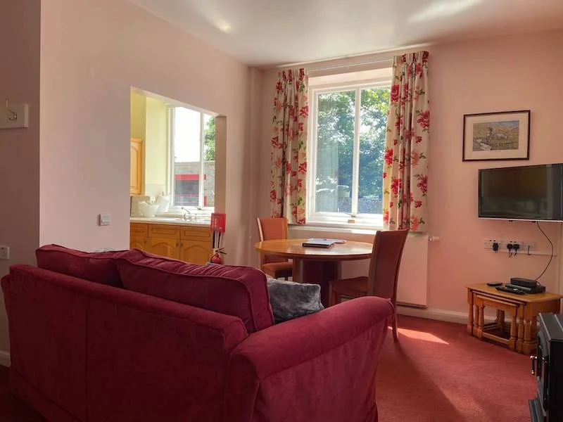 The ground floor is step free throughout, allowing easy movement between the living area, kitchen and ground-floor W/C. The first floor is accessed via a stairlift, supporting guests who cannot manage stairs independently.