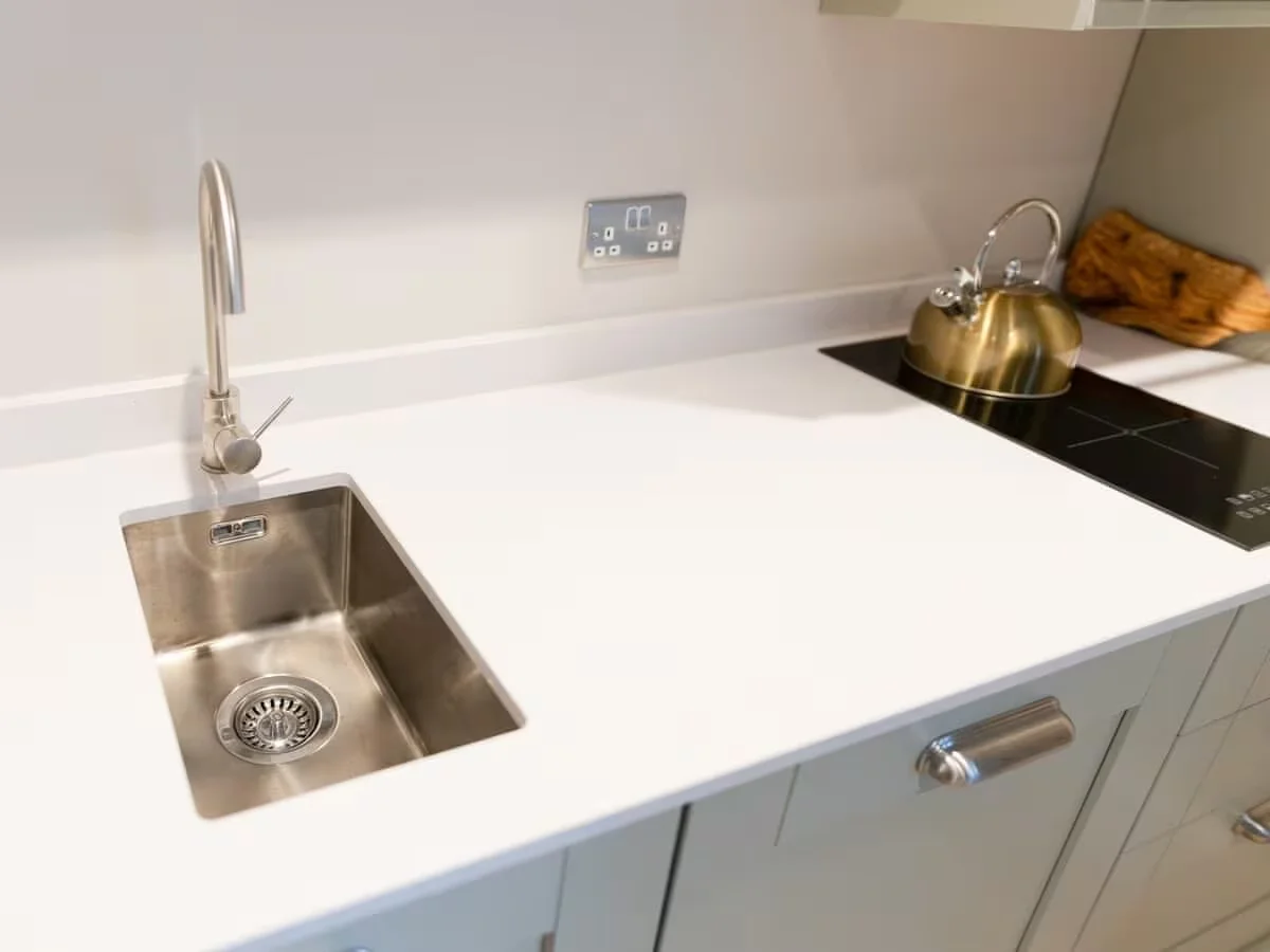 Kitchen facilities are arranged within the open plan layout and are easily accessed from the living area, allowing practical use for guests with limited mobility.