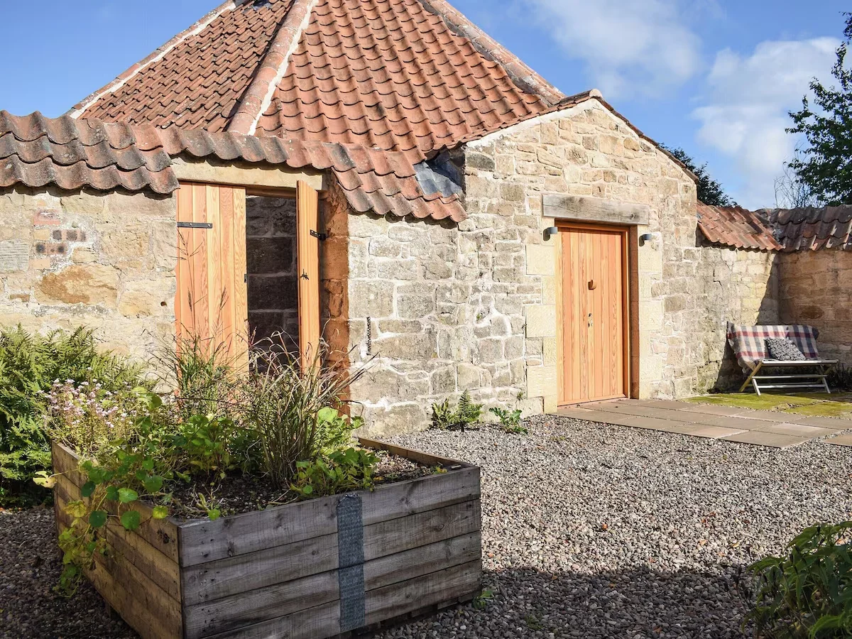 The enclosed garden and patio area provide level outdoor space for seating and relaxation, with views across the surrounding countryside.