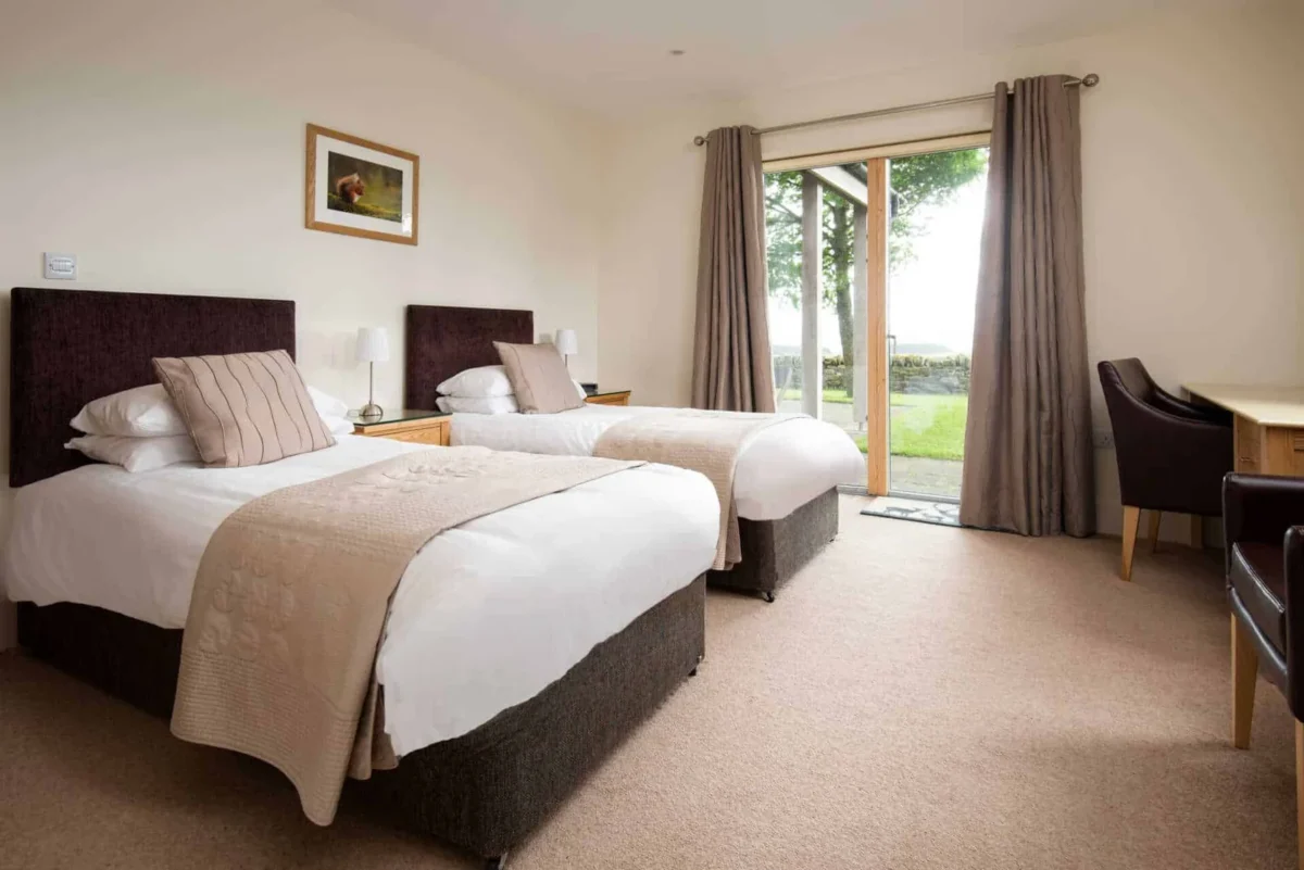 Two ground floor bedrooms provide flexible sleeping arrangements with transfer space exceeding one metre beside the beds. Three additional king sized bedrooms are located upstairs, each with private ensuite facilities.