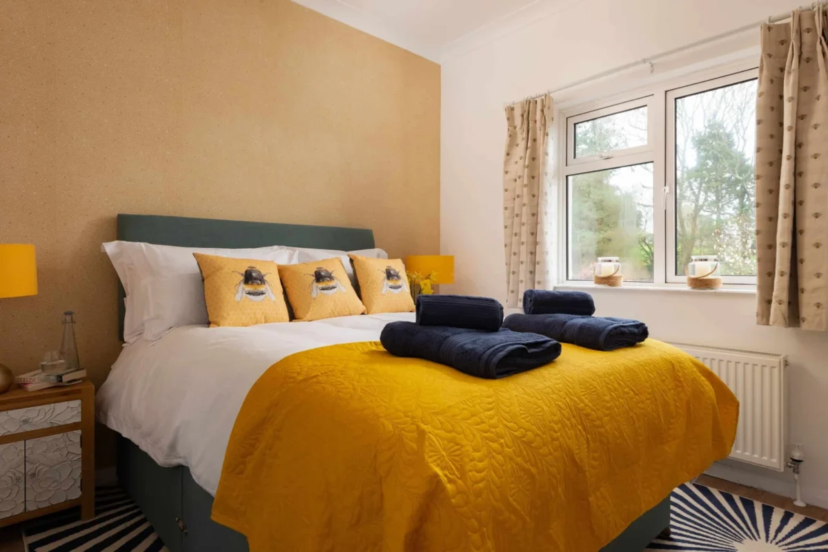 One bedroom is located on the lower ground floor with transfer space exceeding one metre beside the bed. Three further bedrooms are located on the first floor and are accessed via stairs.