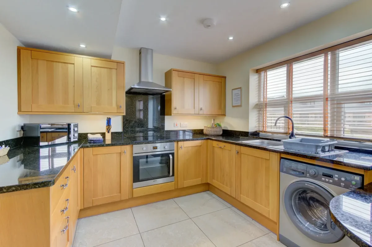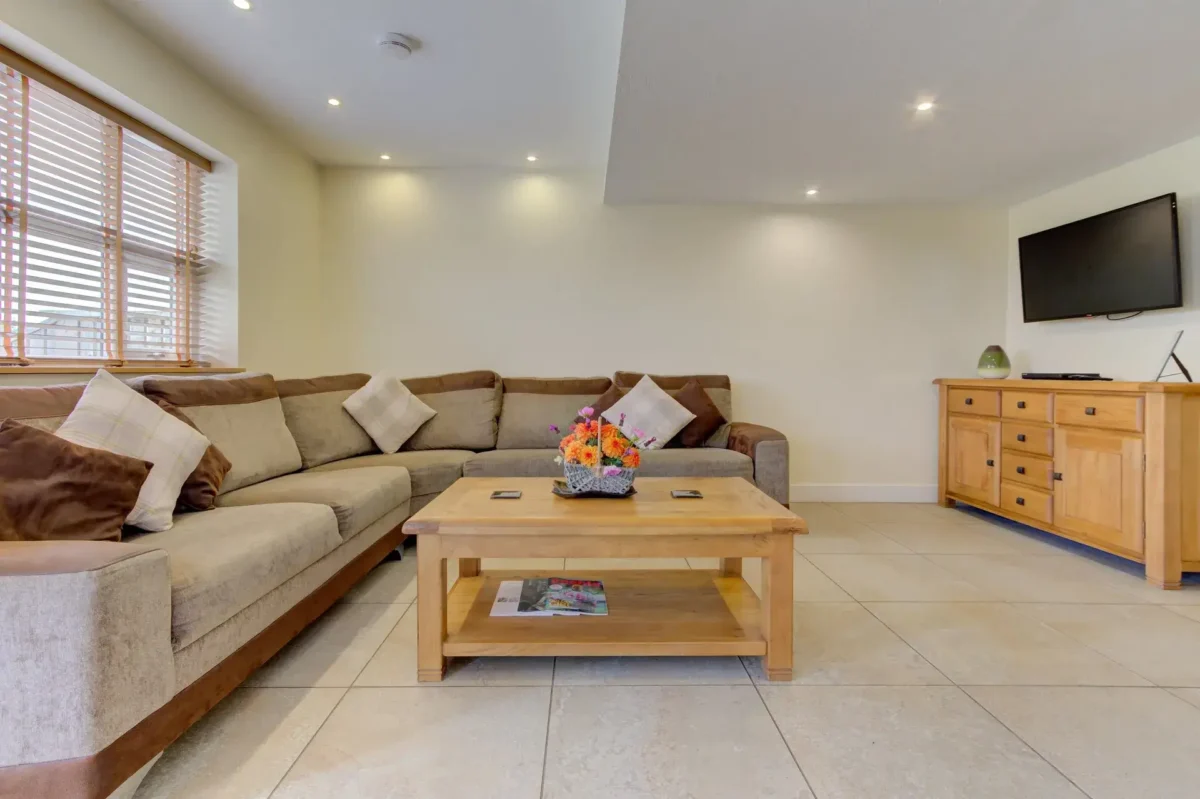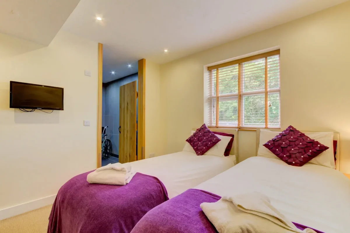 The second ground floor bedroom offers flexible sleeping arrangements and includes a stylish en suite bathroom with a walk in shower. This room is suitable for guests who do not require hoist access.
